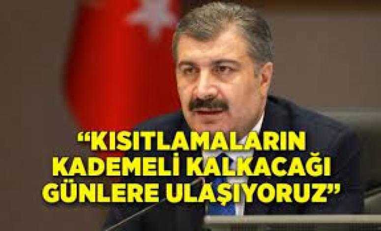 Sağlık Bakanı Fahrettin Koca, "Büyük bölümünü evlerimizde geçirdiğimiz bir ayın sonunda kısıtlamaların kademeli olarak kalkacağı günlere ulaşıyoruz" ifadelerini kullandı.