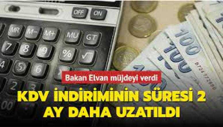Hazine ve Maliye Bakanı Lütfi Elvan, "Konaklama, yeme- içme, ulaşım, iş yeri kiralama ve diğer hizmetlerde son 1 yıldır uyguladığımız KDV oran indirimlerinin süresini 2 ay daha uzatıyoruz" dedi.