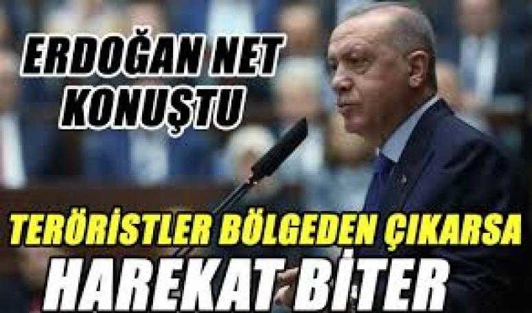 Partisinin grup toplantısında konuşan Cumhurbaşkanı Erdoğan'ın gündeminde Barış Pınarı Harekatı vardı. Terör örgütü ile masaya oturma tekliflerini net bir şekilde reddeden Erdoğan, "Bu gece güvenli bölgeden çıksınlar, harekat biter" dedi.