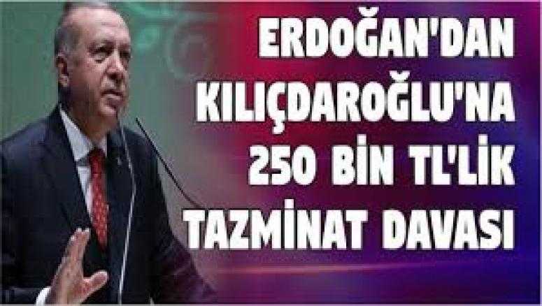 Cumhurbaşkanı Recep Tayyip Erdoğan, CHP Genel Başkanı Kemal Kılıçdaroğlu'na, TBMM'deki grup toplantısında kullandığı ifadeleri nedeniyle 250 bin liralık manevi tazminat davası açtı.