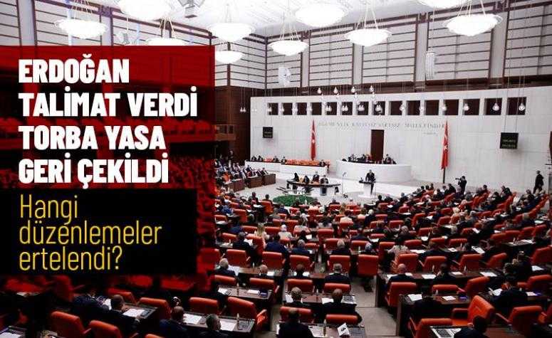 Gıda konusunda yayınlara ceza getiren, gıdada taklit ve tağşiş, hobi bahçeleri, tarım arazilerinin korunması, tütün ve alkol ile ilgili önemli düzenlemeleri içeren "torba yasa" Cumhurbaşkanı Recep Tayyip Erdoğan'ın talimatıyla geri çekildi.