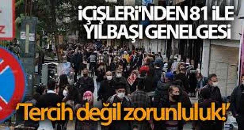 İçişleri Bakanlığı 81 İl Valiliğine yılbaşında uygulanacak sokağa çıkma kısıtlamalarıyla ilgili ek genelge gönderdi Genelgede hafta sonları uygulanan sokağa çıkma kısıtlamasının önümüzdeki hafta içi yılbaşı akşamını da kapsayacak şekilde 31 Aralık 2020 Perşembe günü saat 21.00’den 4 Ocak 2021 Pazartesi günü saat 05.00’e kadar uygulanacağı hatırlatıldı.