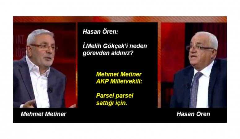 AK Partili Mehmet Metiner, eski Ankara Büyükşehir Belediye Başkanı Melih Gökçek'i fena kızdıracak. Metiner, canlı yayında "Gökçek neden neden başkanlıktan el çektirildi" sorusuna "Parsel parsel sattığı için" yanıtını verdi.