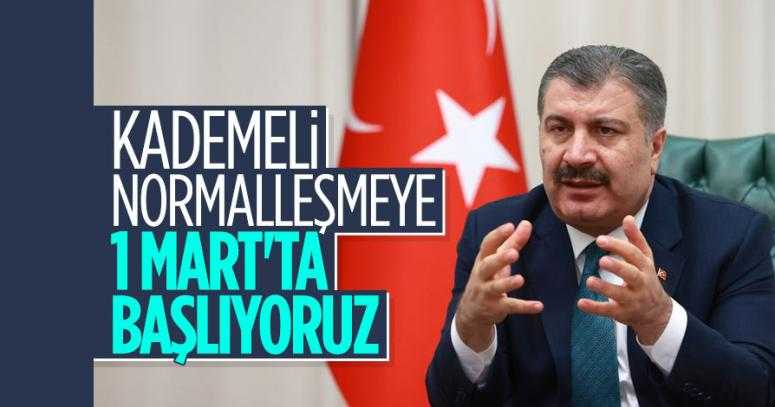 Sağlık Bakanı Fahrettin Koca, Türkiye'de koronavirüsle mücadele kapsamındaki normalleşme sürecinin 1 Mart'ta başlayacağını duyurdu.