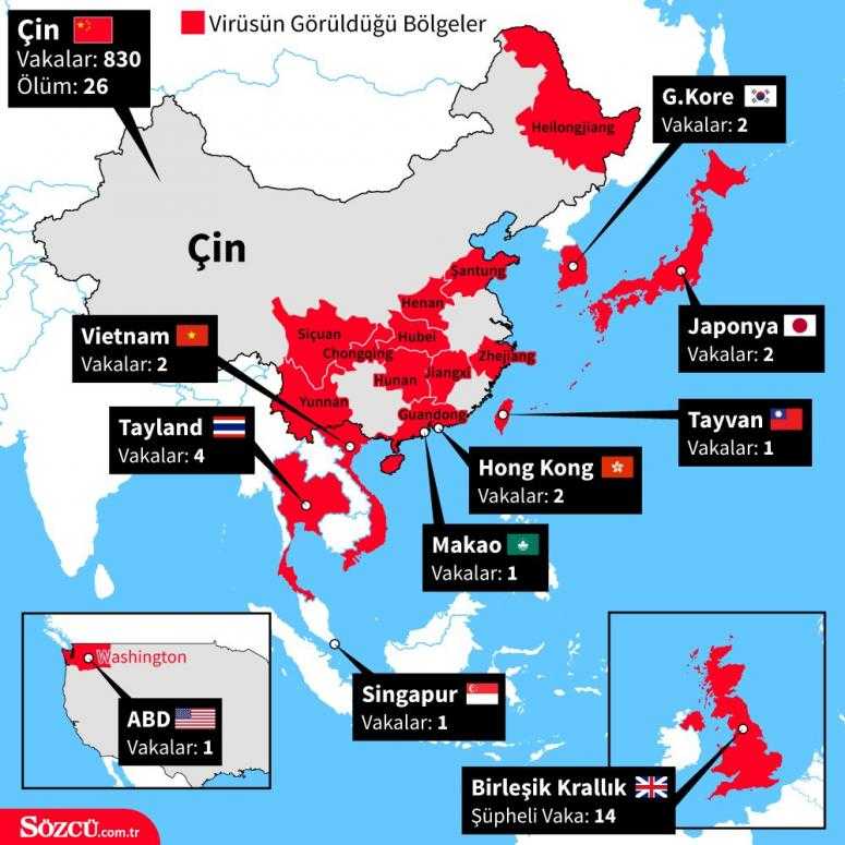 Öte yandan ABD’nin Chicago ve Washington kentlerinde de iki kişide corona virüs görülürken, 22 eyalette 63 kişinin kontrol edildiği ve Washington yönetiminin Wuhan’da bulunan 1000 ABD vatandaşına, “Bölgeyi tahliye edin” diye uyardığı aktarıldı.