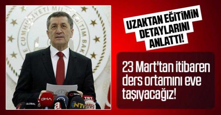 Uzaktan eğitimin internet ortamında ve TRT ekranlarında gerçekleşeceğini belirten Selçuk, "Ülkemiz, uzaktan öğrenme sistemiyle dünyada ilk kez ulusal ölçekte televizyon ve internet ders programlarıyla model ülke olmaya hazırdır" açıklamasını yaptı. Ders programlarının ayrıntılarının yarından itibaren paylaşılacağını belirten Selçuk, öğrencilerin 1 haftalık tatilde dinlenmesi gerektiğini söyledi.