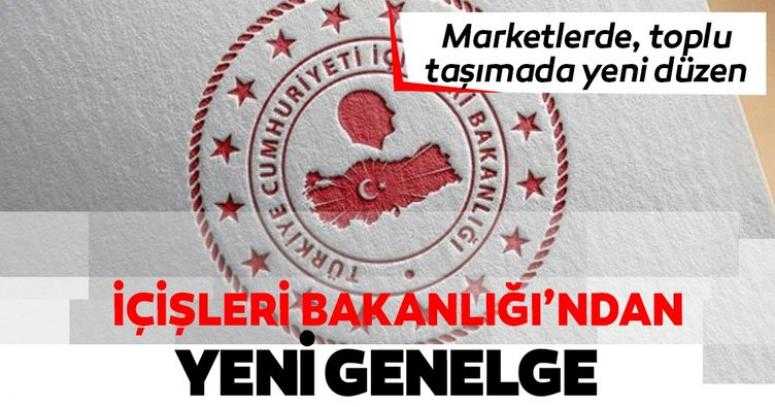İçişleri Bakanlığı, 81 İl Valiliğine corona virüsü (Kovıd-19) salgını ile mücadele kapsamında ek bir genelge daha gönderdi. İçişleri Bakanlığı 81 il valiliklerine yeni bir ek genelge gönderdi. Genelgeye göre küçük ya da büyük bütün marketler sabah saat 09:00'da açılacak ve akşam saat 21:00'da kapatılacak. Ayrıca toplu taşıma araçları da kapasitesinin yüzde 50'si kadar yolcu alabilecek.