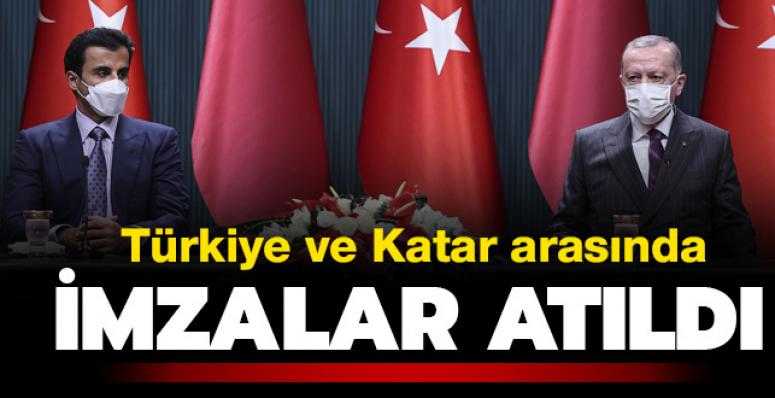 Cumhurbaşkanı Recep Tayyip Erdoğan ve Katar Emiri Şeyh Temim bin Hamad Al Sani’nin Cumhurbaşkanlığı Külliyesi’nde baş başa ve heyetler arası görüşmelerinin ardından çeşitli anlaşmalar imzalandı.