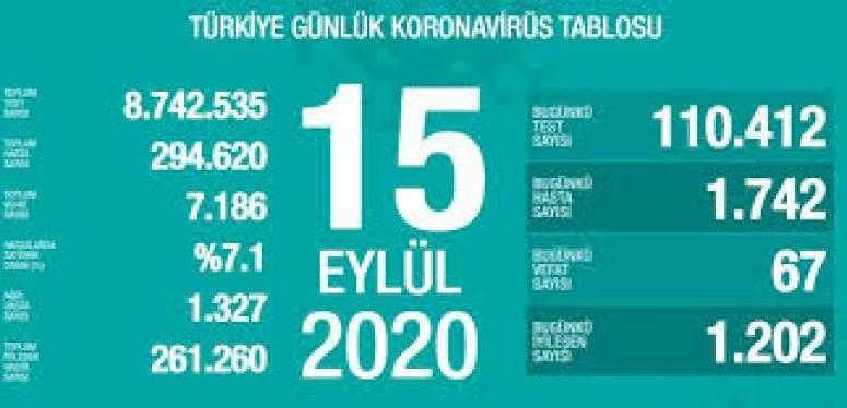 Sağlık Bakanlığı, yeni tip korona virüsün (Kovid-19) Türkiye'deki güncel durumuna ilişkin güncel verileri paylaştı. Verilere göre, Türkiye'de korona virüs nedeniyle 67 kişinin daha hayatını kaybetti, 1742 yeni vaka tespit edildi.