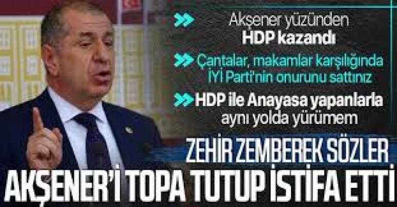 Siyaseten iyi tanıdığım Akşener'in beni tekrar İYİ Parti'den ihraç edecek cesareti olmadığını biliyorum. HDP ile aynı masaya oturanlarla, HDP'yi Kürtlerin temsilcisi olarak görüp kapatılmasını istemeyenlerle, aynı partide bulunmam mümkün değildir. İYİ Parti'den istifa ediyorum.